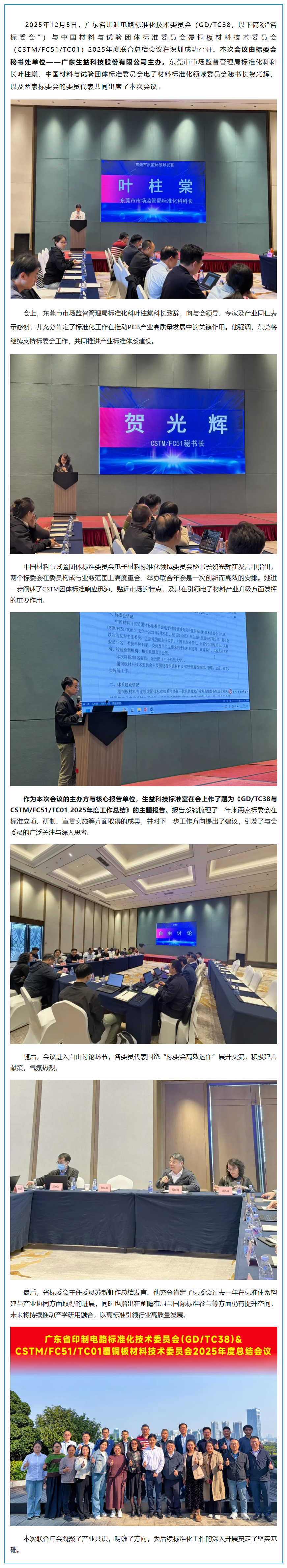 广东省印制电路标准化技术委员会及中国材料与试验团体标准委员会覆铜板材料技术委员会2025年度联合总结会议顺利召开