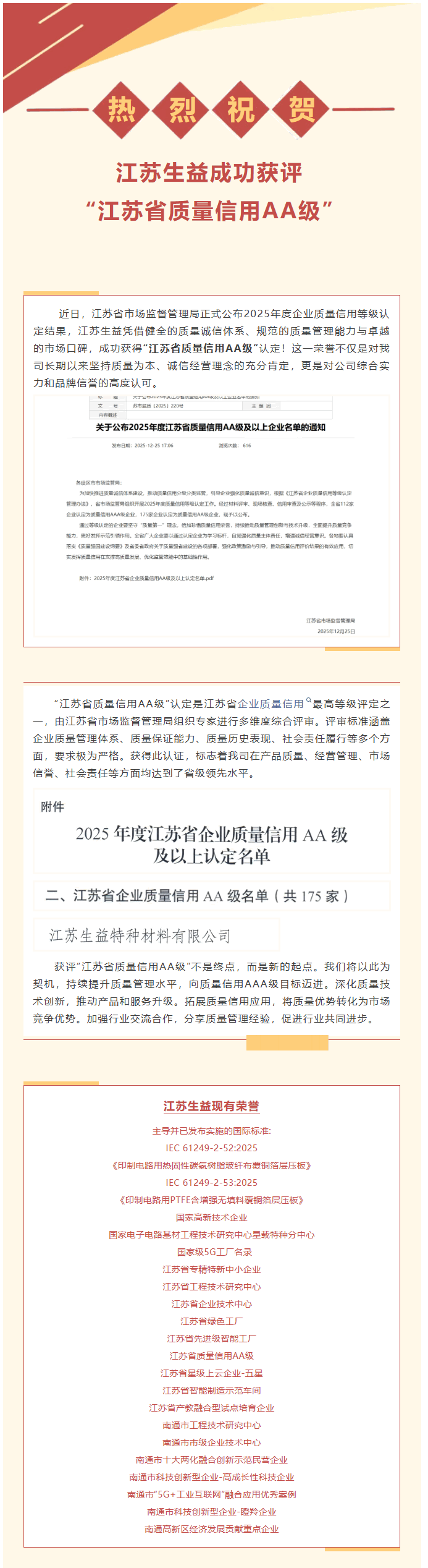 以诚信铸品质,以信用赢未来——祝贺江苏龙8中国官网唯一入口荣膺“江苏省质量信用AA级”认定