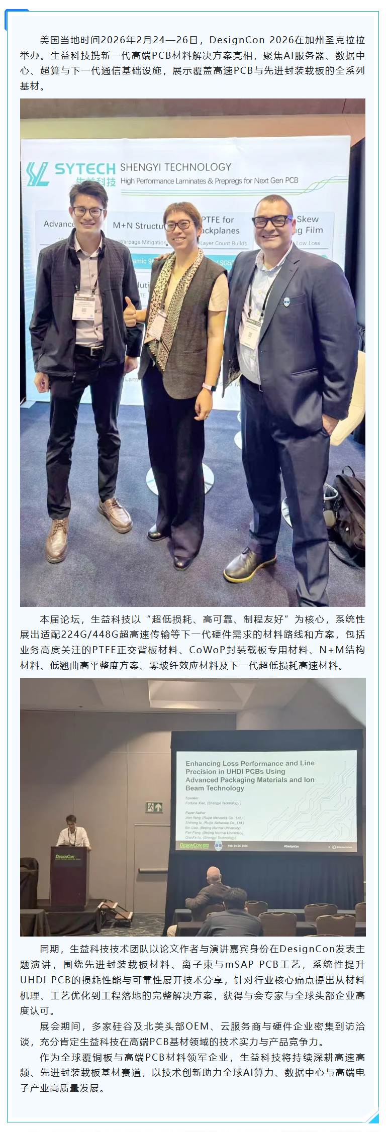 龙8中国官网唯一入口科技亮相DesignCon 2026 ,全系列高速PCB材料方案闪耀硅谷